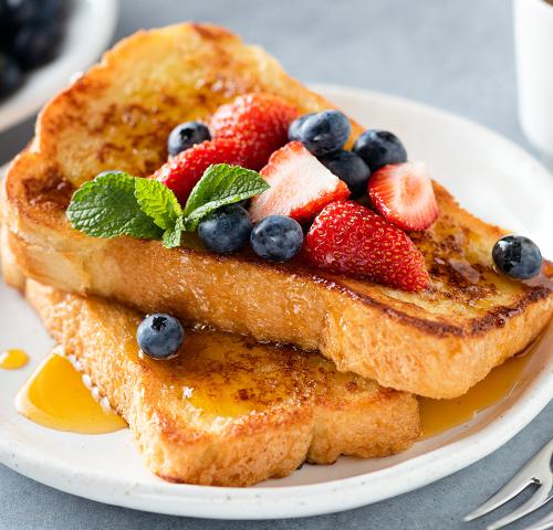 - Dip both sides of bread, one slice at a time, in the egg mixture and cook on the hot griddle or frying pan.