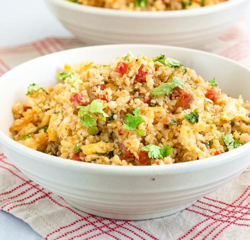 - Stir and fry the rice and veggie mixture until heated throw and cauliflower is tender.