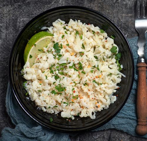 - Mix a bag of frozen cauliflower rice with chopped onion on a sheet pan.
