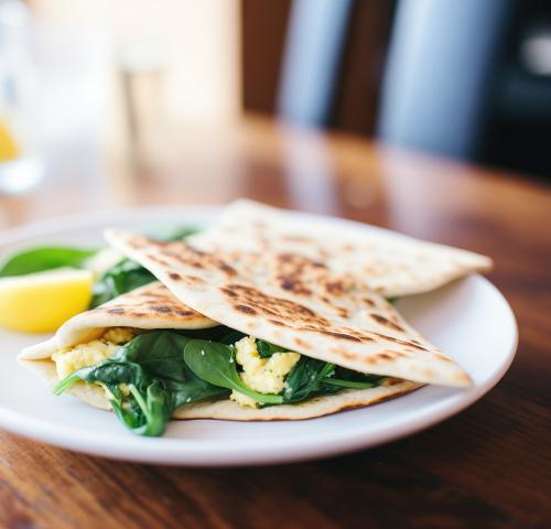 Spinach and Feta Scrambled Egg Pitas