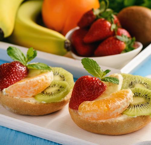 Use whatever fruit you have on hand to top toasty English muffins and cream cheese.