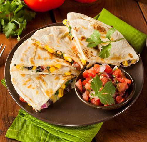 Crisp tortilla, melting cheese, and delicious veggies make a light and easy lunch.